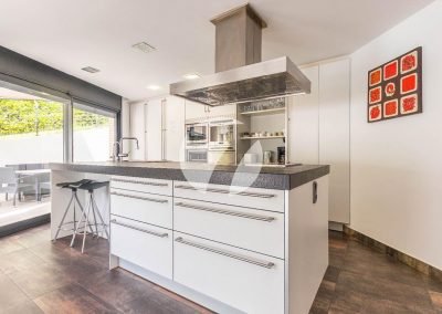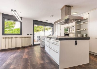 A pie de calle nos encontramos gran parte de las estancias de la vivienda, el salón comedor con grandes ventanales, la gran cocina de diseño tipo chef totalmente equipada, dos habitaciones doble y otra individual y tres baños.